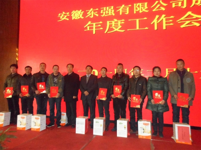 一元復(fù)始,萬(wàn)象更新。為認(rèn)真總結(jié)和回顧2013年度各項(xiàng)工作,并對(duì)2014年的生產(chǎn)經(jīng)營(yíng)管理提出明確的目標(biāo)任務(wù)和計(jì)劃。表彰先進(jìn),提升士氣,充分凝聚企業(yè)團(tuán)隊(duì)的智慧和力量,以良好的團(tuán)隊(duì)精神、團(tuán)隊(duì)能力和團(tuán)隊(duì)業(yè)績(jī),確保2014年各項(xiàng)目標(biāo)任務(wù)的圓滿完成和企業(yè)的長(zhǎng)遠(yuǎn)發(fā)展,2014年2月19日,公司在合肥同慶樓花園酒店召開(kāi)了年度工作會(huì)議。出席會(huì)議的有公司領(lǐng)導(dǎo),安徽東強(qiáng)、西站、鯤翼商貿(mào)全體員工,蕪湖康特、蕪湖東強(qiáng)、六安宏順、六安鯤鵬、六安東升中層以上管理者、獲獎(jiǎng)人員及五年以上員工。